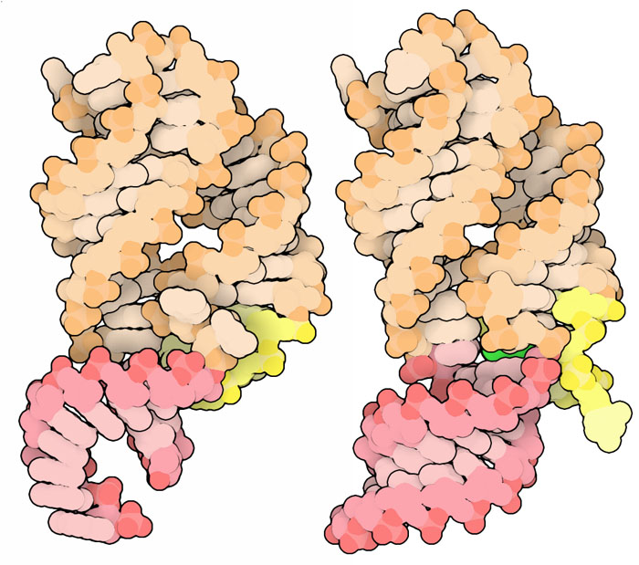 Riboswitches are structurally dynamic RNA molecules, undergoing changes in shape as they perform their regulatory functions. Riboswitches typically have two domains: a ligand-binding “aptamer” domain that changes conformation when it binds to a specific ligand, which then sends a signal to an “expression platform” domain that regulates use of the RNA.